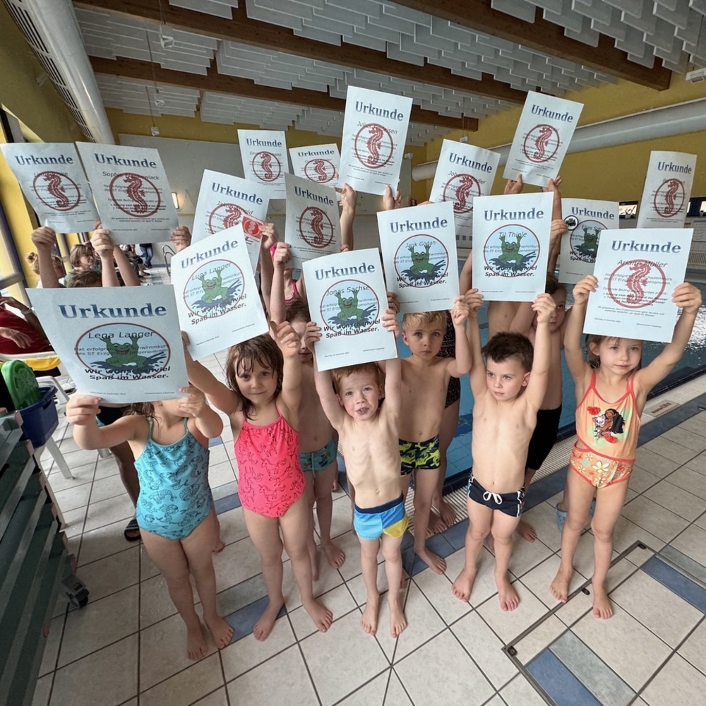 Mit viel Spaß, Fleiß und Ehrgeiz haben unsere Jüngsten in den letzten drei Monaten für Ihre Schwimmabzeichen geübt. Dafür wurden sie nun mit Seepferdchen-, Seeräuber-, Seehund, Bronze- oder Silberabzeichen belohnt. Herzlichen Glückwunsch!