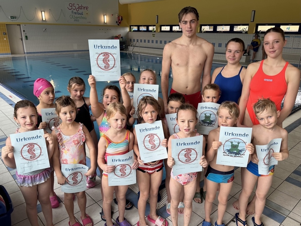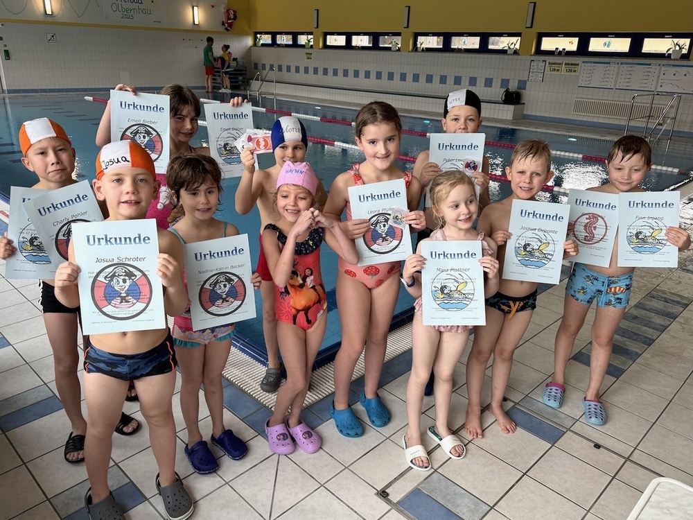 Letzte Woche haben beim Schwimmteam Erzgebirge wieder eine Menge Kinder ihr Seepferdchen und andere Schwimmstufen in Olbernhau erhalten.
