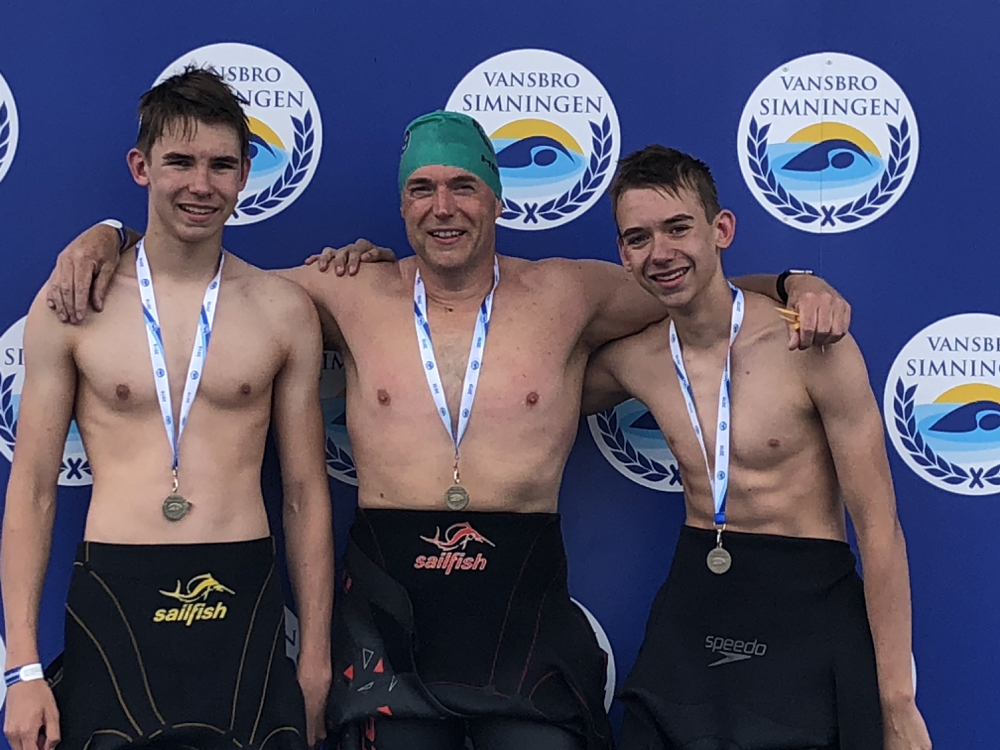 Dieses Wochenende fand im schwedischen Vansbro das populäre Vansbrosimningen statt. Bei diesem drittgrößten Freiwasserwettkampf der Welt, an dem über 12.000 Menschen teilnehmen, werden 3 km durch 2 Flüsse und sieben Brücken schwimmend zurückgelegt. Auch unser Verein nahm mit Matthias Weiß und seinen beiden Söhnen Konrad und Johann an diesem Event teil. Alle drei konnten ihre Zeit aus dem Vorjahr verbessern, obwohl die Flüsse nur Temperaturen von ca. 15°C aufwiesen. Unter den ca. 3900 männlichen Startern erreichte Konrad einen sagenhaften 31. Platz. Auch Matthias und Johann schafften es mit Platz 68 und 69 unter die Top 100. Für die Drei stellte dieser gigantische Wettkampf einen gelungenen Saisonabschluss und gleichzeitig einen tollen Start in die wohlverdienten Sommerferien dar.