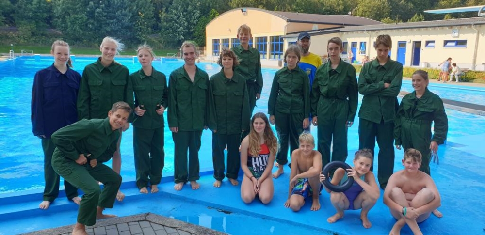 Für einen gelungen Auftakt in die Saison 2019/20 sorgte am Wochenende das Zeltcamp in Olbernhau. Während für die "kleineren" Kinder Aktivitäten wie Mehrjungfrauenschwimmen, Saftstaffel, Turmsprung- oder Tauchtierwettbewerb auf dem Programm standen, verbrachten die größeren Kinder das Wochenende damit, eine Rettungsschwimmerausbildung zu absolvieren. Neben den Theoriestunden standen auch praktische Übungen wie Kleiderschwimmen, Rettungsgrifftraining und Tauchen auf dem Plan. Das Highlight bildete die gemeinsame Nachtwanderung durch die nahe gelegenen Wälder.