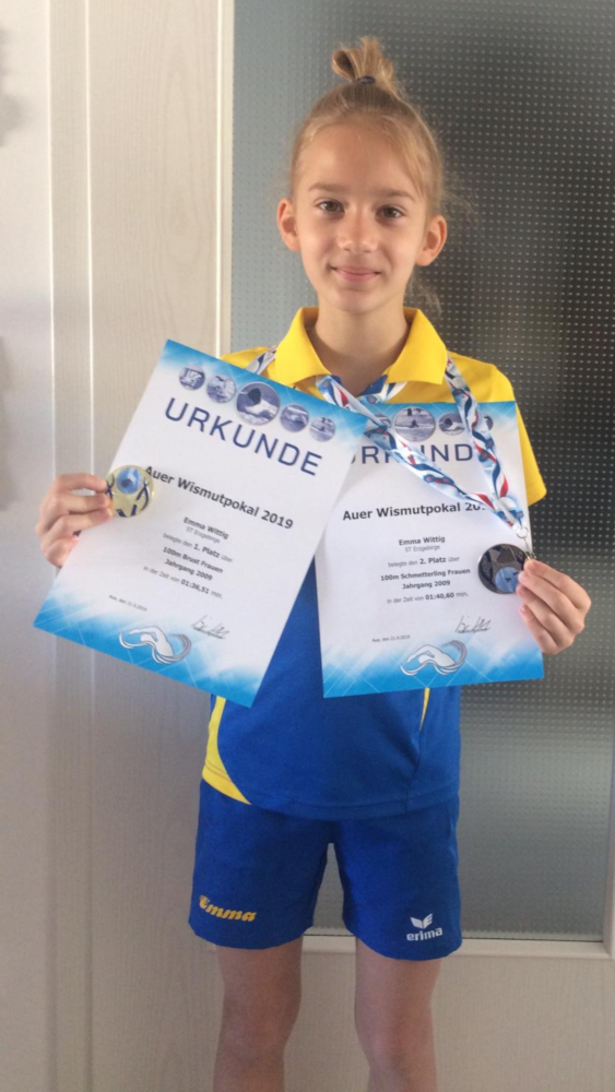 In Aue haben unsere jüngeren Sportler am diesjährigen Wismutpokal teilgenommen. Den Saisonauftakt nutzten die 11 Sportler und Sportlerinnen des Schwimmteam Erzgebirge, um neue Bestzeiten aufzustellen, oder neue Strecken auszuprobieren. Emma Wittig gelang gleich zweimal der Sprung auf das Treppchen: über 100m Schmetterling sicherte sie sich Rang 2 und die 100m Brust Strecke entschied sie für sich. Am Wettkampf nahmen 22 Vereine aus ganz Sachsen teil.