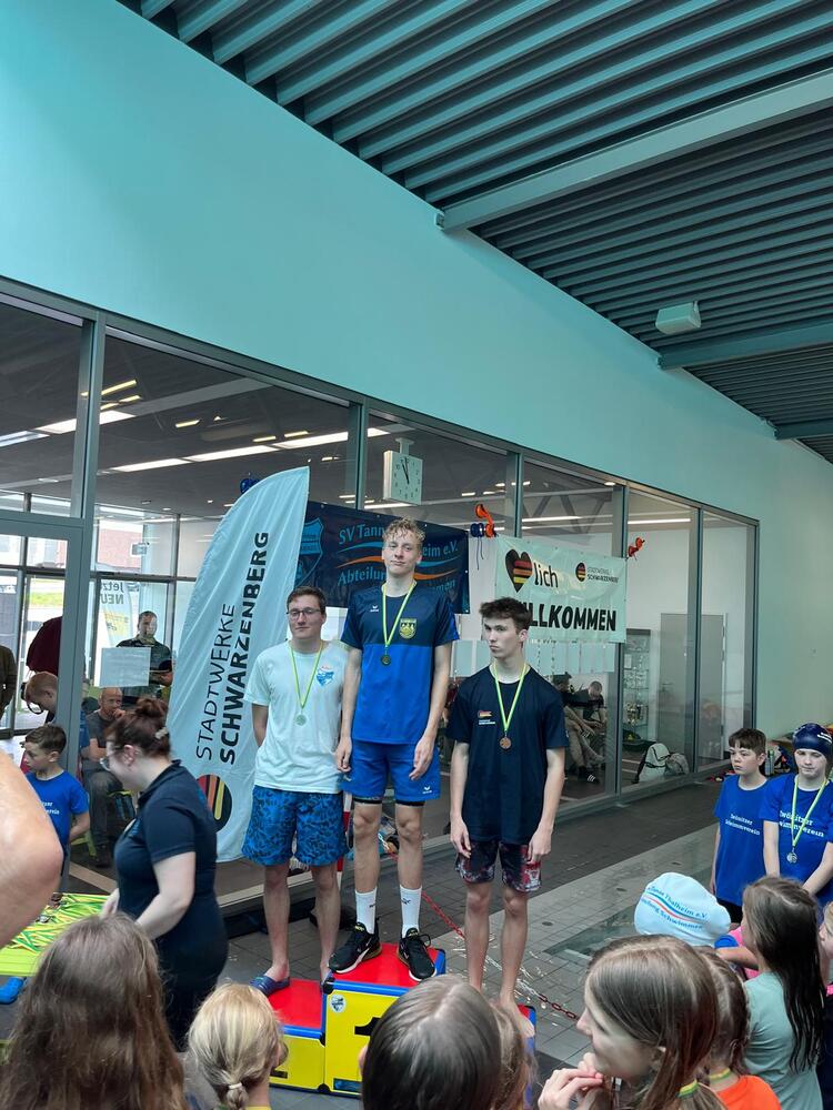 Ebenfalls am Samstag fand in Schwarzenberg der Vorkampf für die Erzgebirgsspiele im Schwimmen statt, an dem auch vom Schwimmteam Erzgebirge einige Sportler um den Einzug ins Finale kämpften, welches am 1.6.2024 in Aue stattfinden wird. Unter Ihnen war auch unser "Zitteraal" Kimi Richter, der nach seiner Schulterverletzung in den letzten Wochen nur seine Beine trainieren konnte und seinen ersten Wettkampf-Auftritt feierte. Mit dem Turbo in den Beinen sprintete er 8 mal auf´s Podest und deklassierte die Konkurrenz. Anschließend ging es für ihn direkt nach Ingolstadt zu den Süddeutschen Meisterschaften, wo er am Sonntag über 50m Freistil startete. Chapeau Kimi!