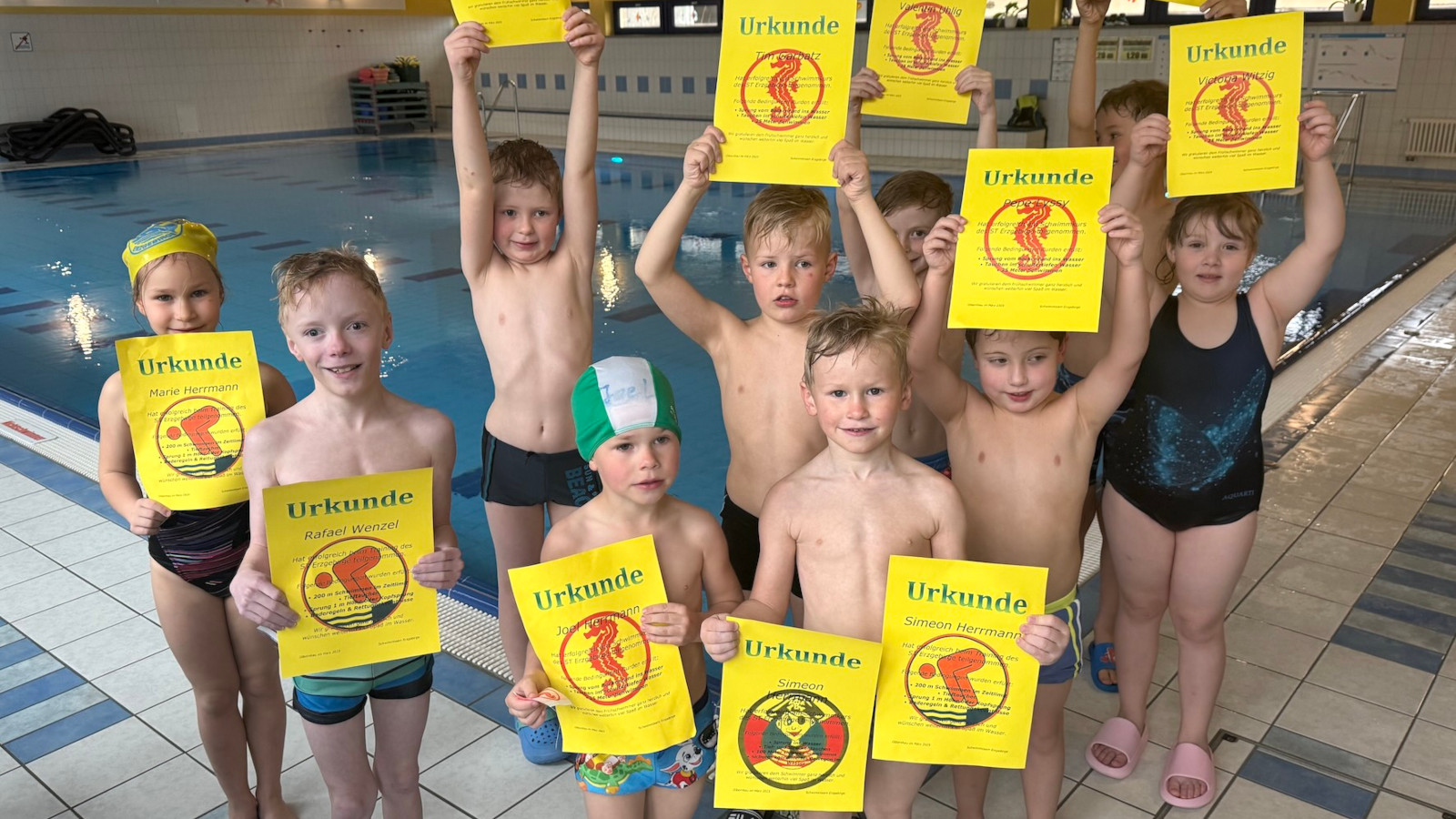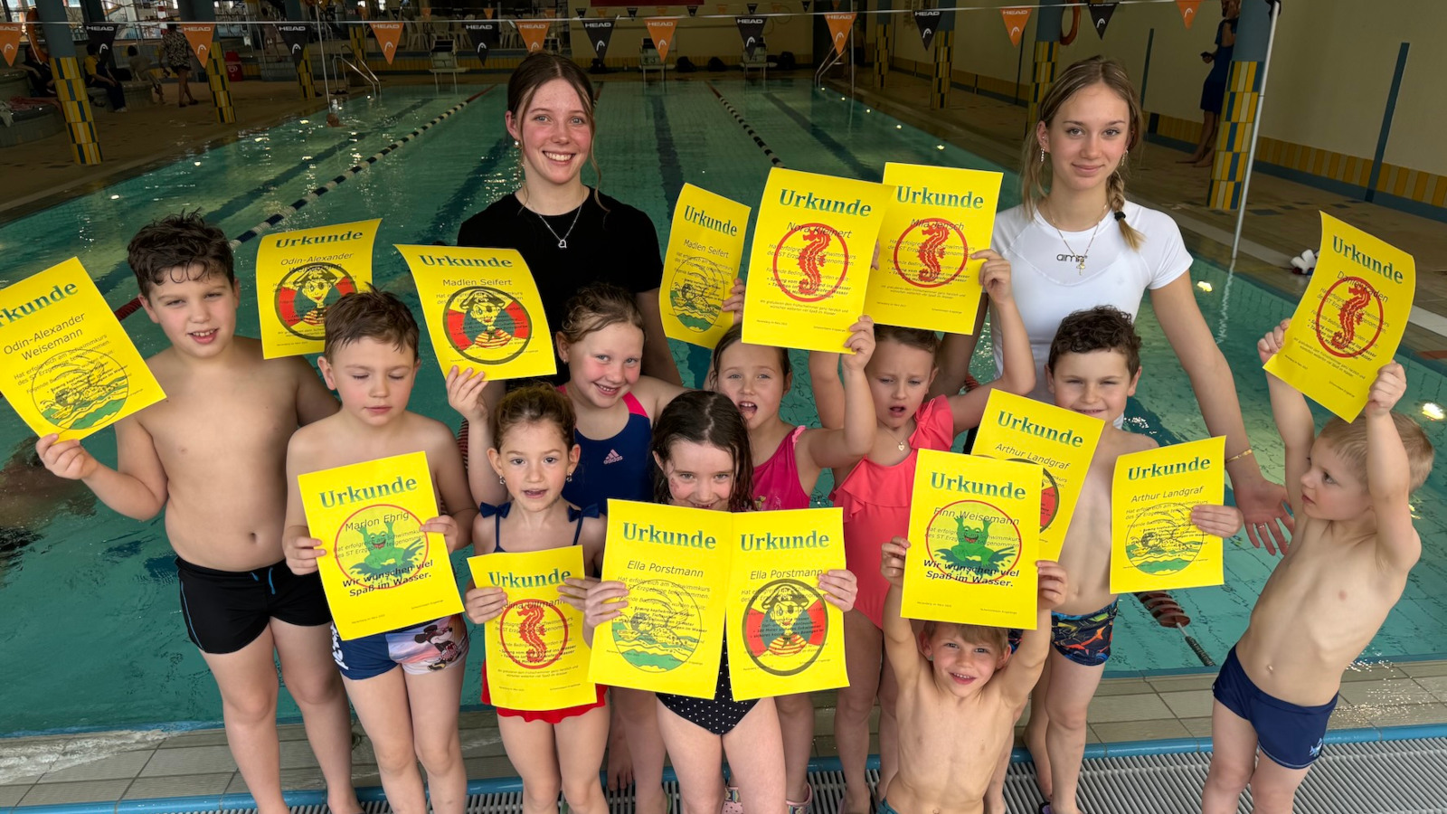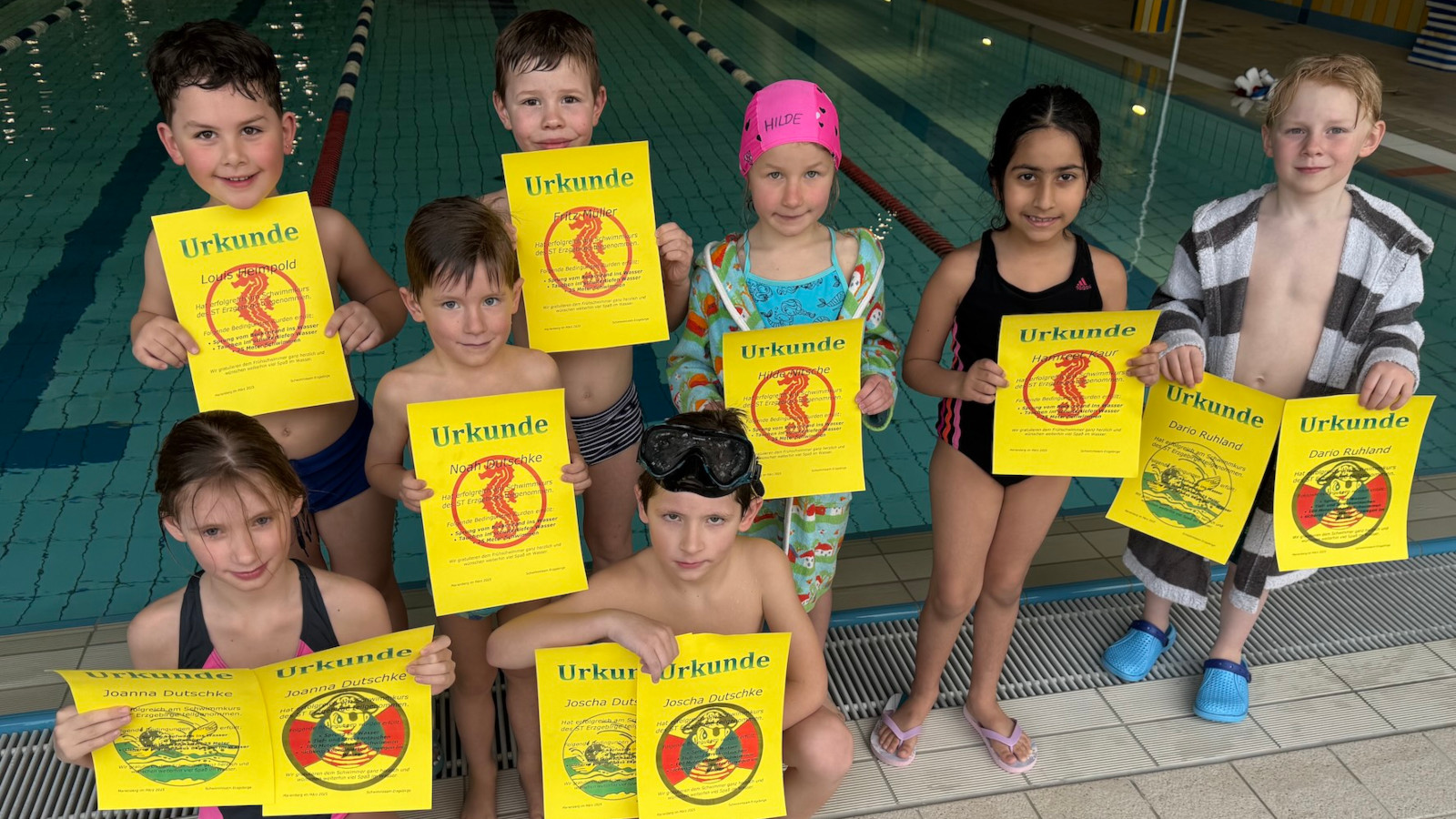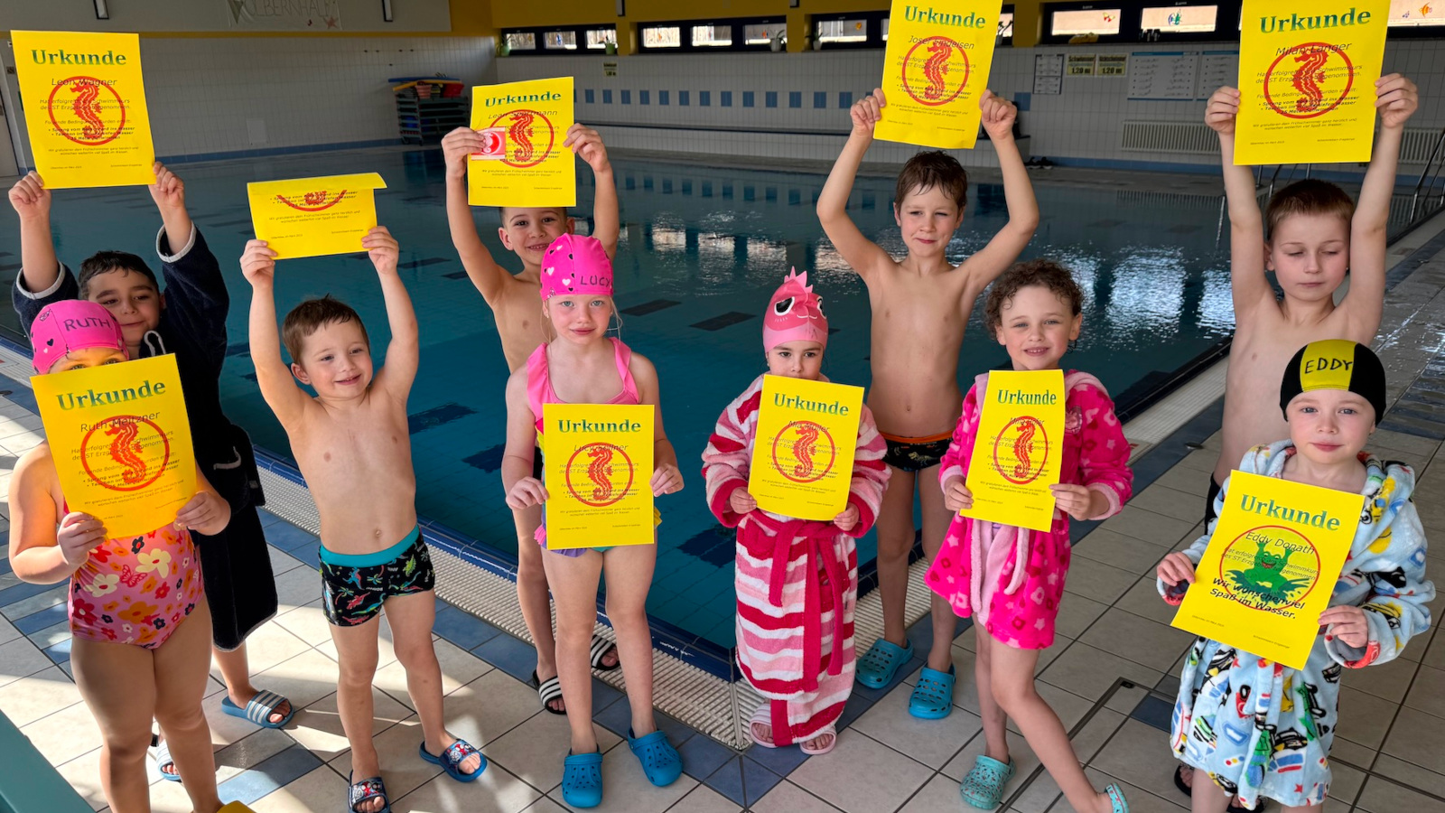 Mit viel Spaß, Fleiß und Ehrgeiz haben unsere Jüngsten in den letzten drei Monaten für Ihre Schwimmabzeichen geübt. Dafür wurden sie nun mit Seepferdchen-, Seeräuber-, Seehund, Bronze- oder Silberschwimmabzeichen belohnt.